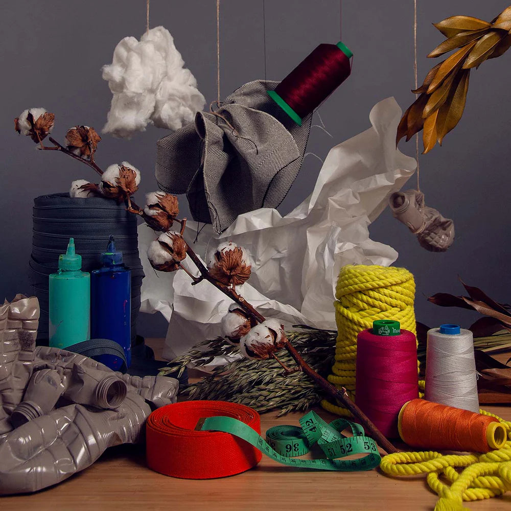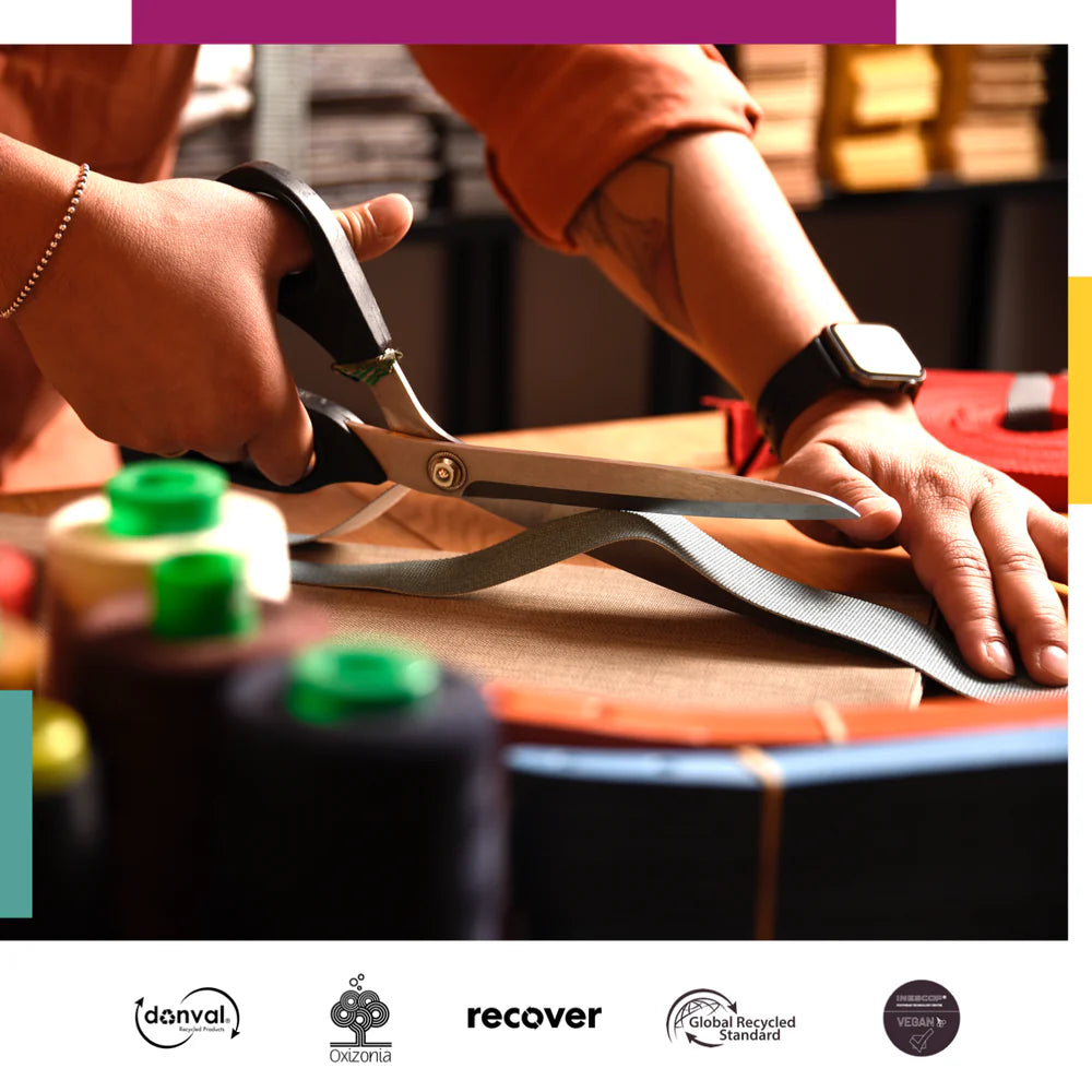 tapicería de algodón reciclado o tejidos obtenidos de botellas PET recicladas en el caso de los artículos impermeables.