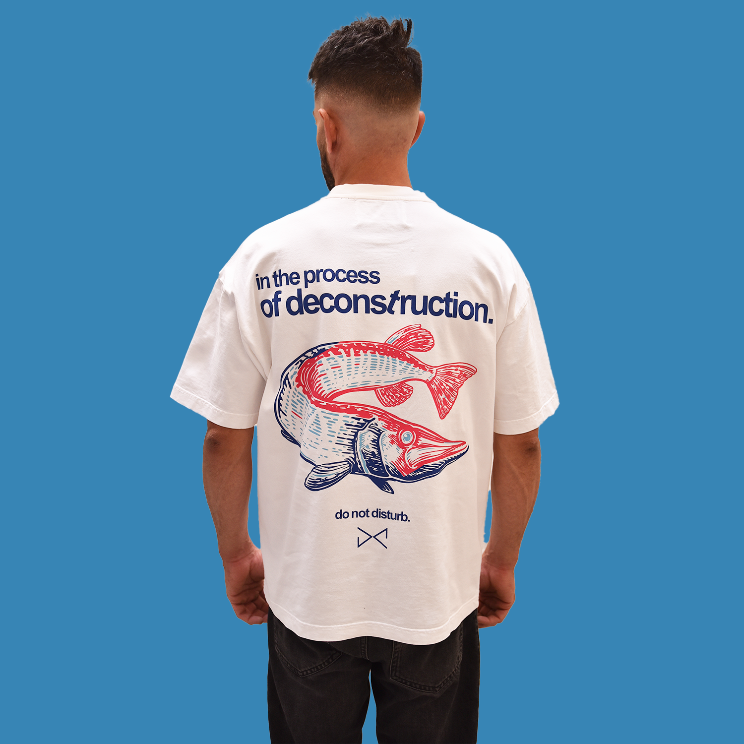 Confeccionada en algodón suave Better Cotton de alta calidad, esta prenda destaca por su bordado frontal sutil con el logo Daniel Chong y un llamativo estampado en la espalda con la frase "In the Process of Deconstruction"
