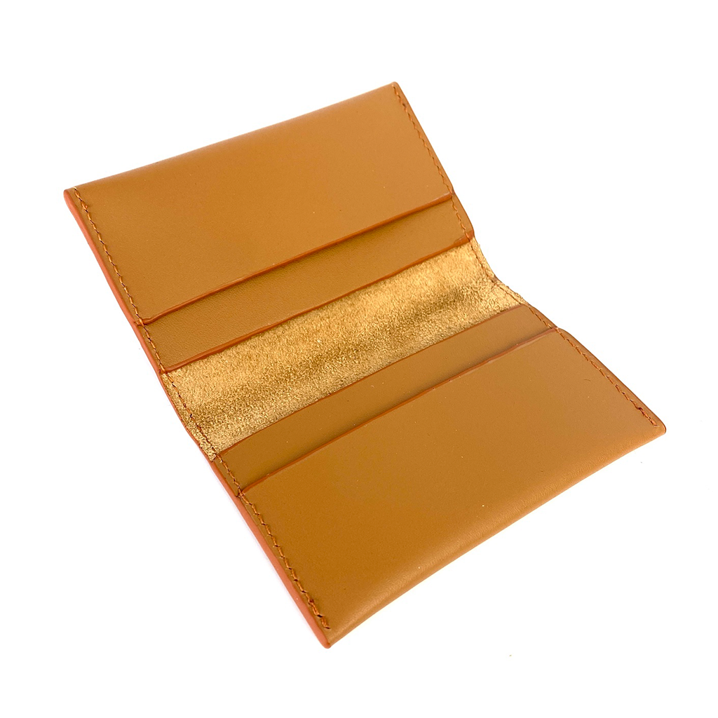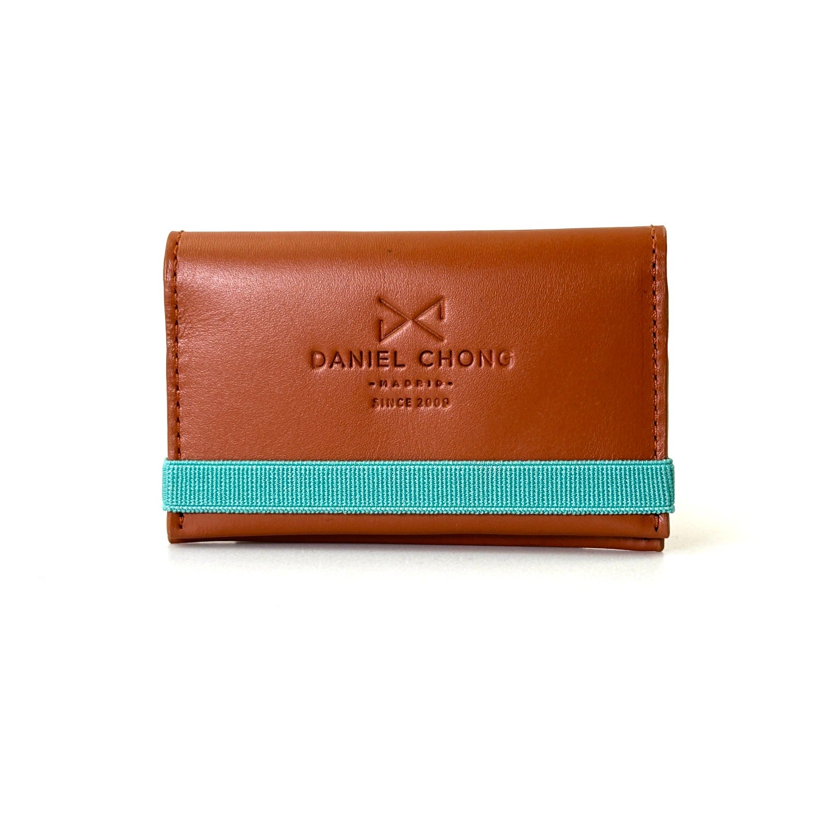 Tarjetero Daniel Chong de cuero, con goma y dos compartimentos para tarjetas.